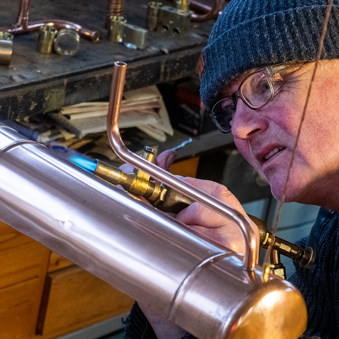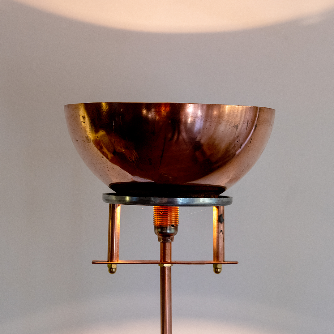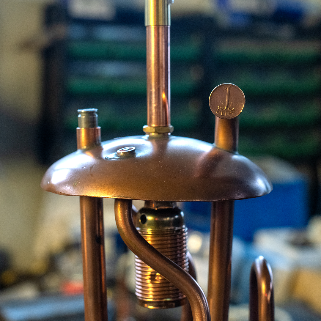 Het idee om een lamp te maken ontstond toen hij een oude boiler open maakte. ,,Jaren geleden zag ik bij een collega een koperen lamp in zijn atelier. Ik was daar heel enthousiast over. We hebben toen afgesproken samen boilerlampen te maken.’’